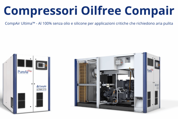CompAir Ultima™ : Al 100% senza olio e silicone per applicazioni critiche che richiedono aria pulita